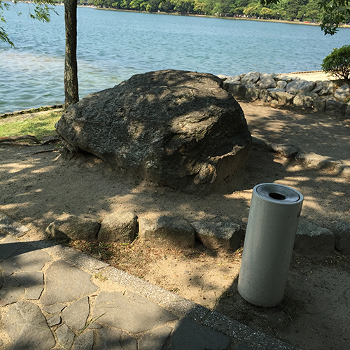 ベンチより座りやすそうな岩とベンチから歩かないと届かないタバコの吸い殻
