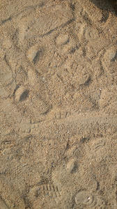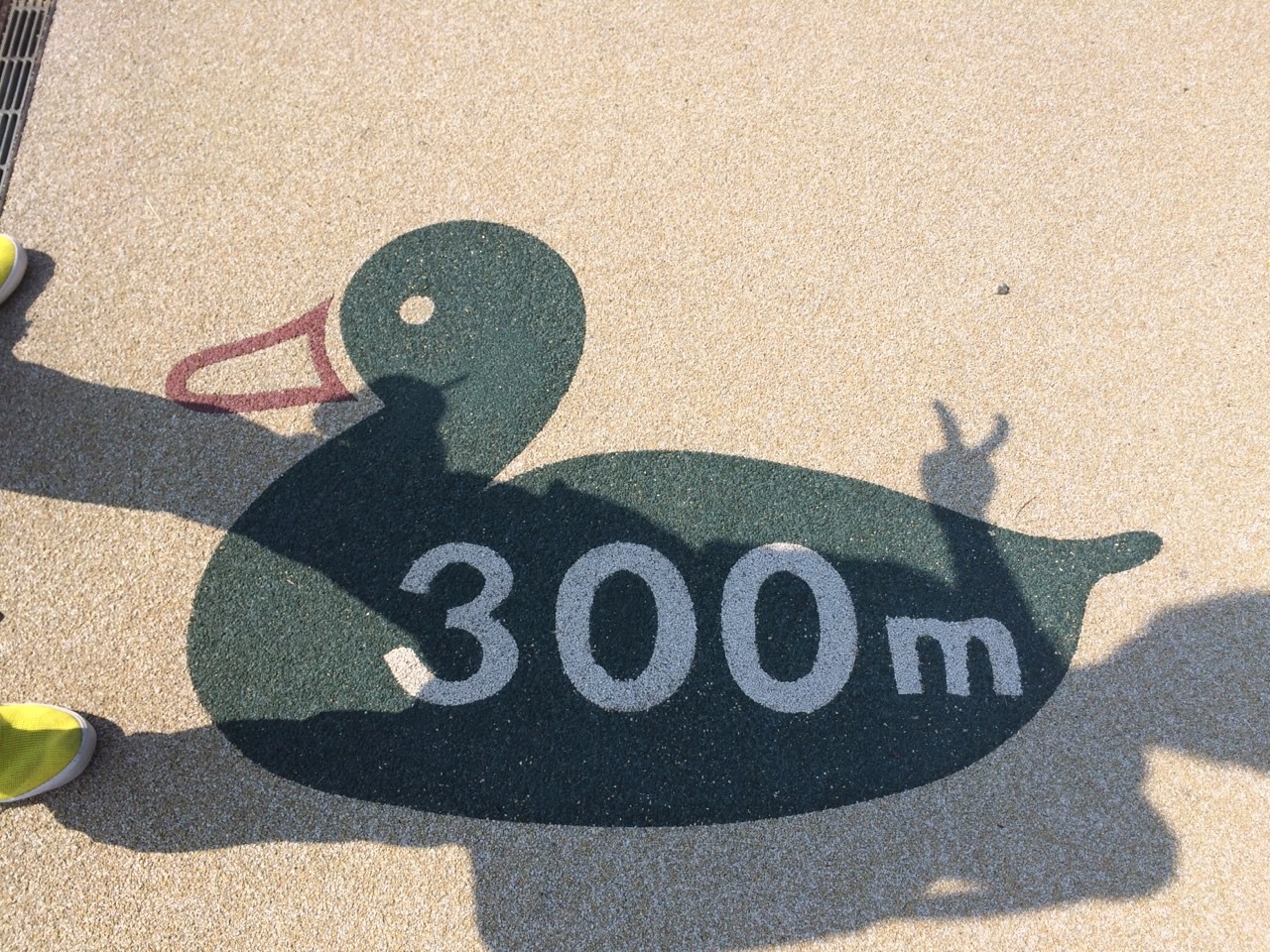 で、砂場にたどり着き、子供の小さい靴の跡や大人の大きい靴の跡や自転車通ったの跡など色んな跡があり、これは「かわいい」と思い写真を撮りました。