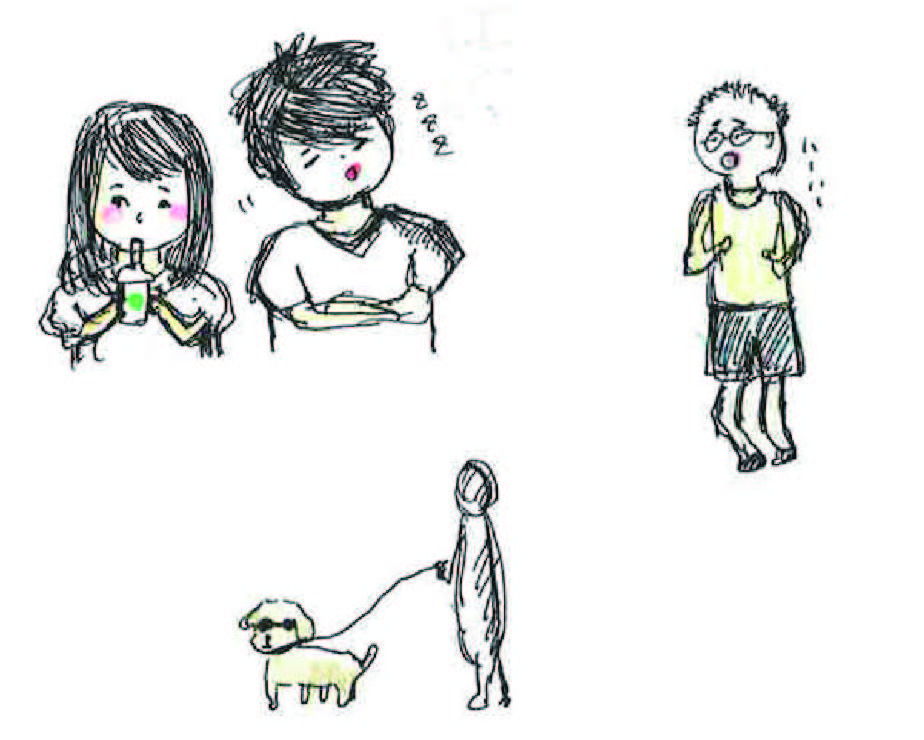 たくさんの人の動きを見て一生懸命こいでる姿や走っている姿など、歩いている姿や飲み物を飲んでいる姿、食べ物を食べている姿がkawaiiと感じました。